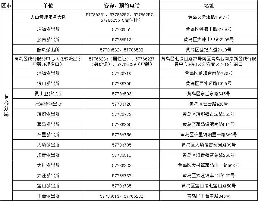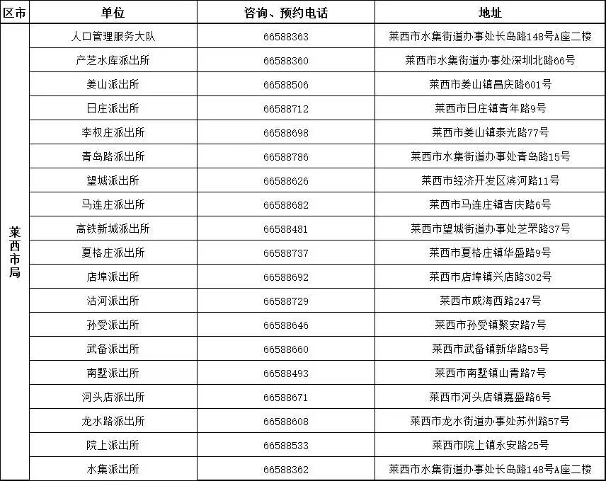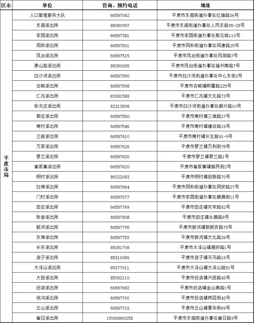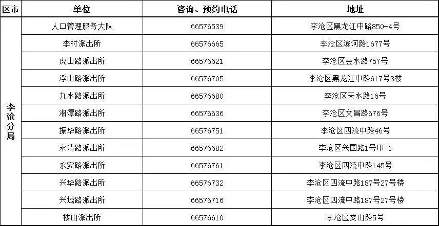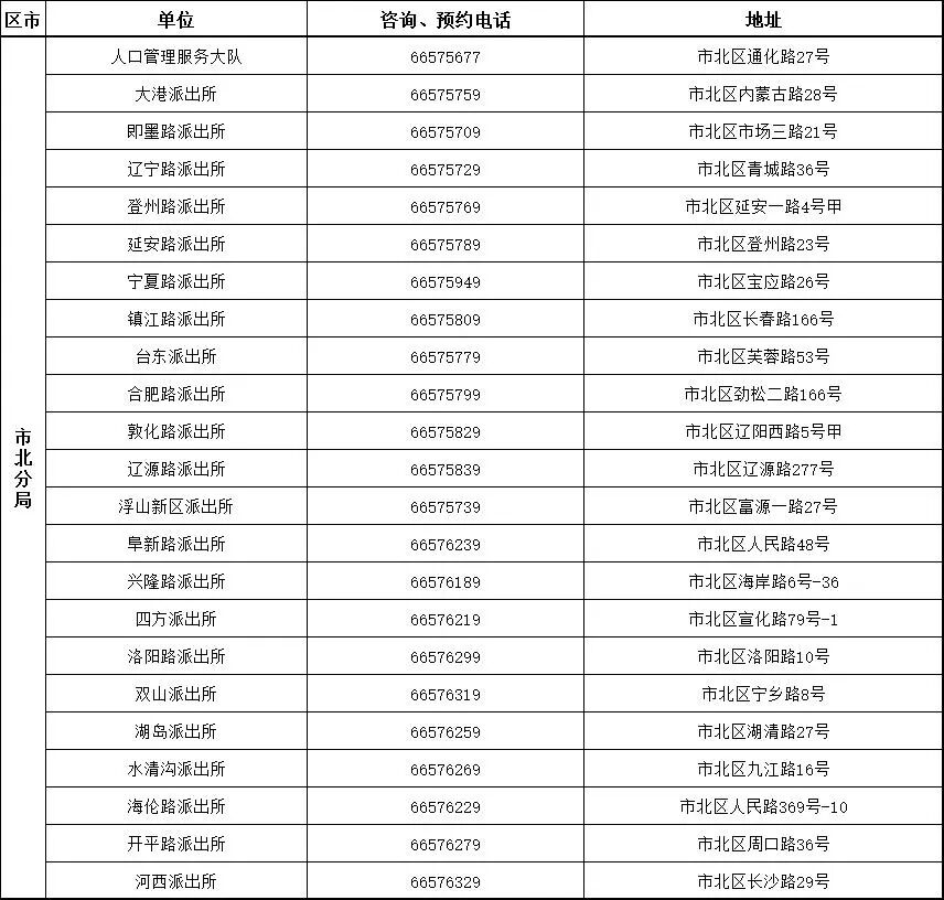 附有自助机的派出所地址及全市公安机关窗口服务电话(请工作日咨询)
