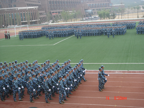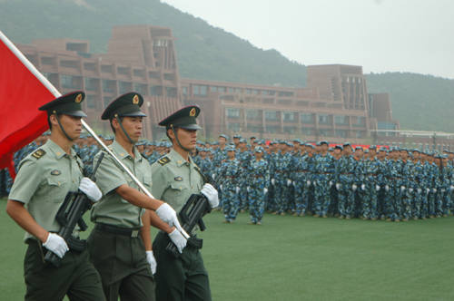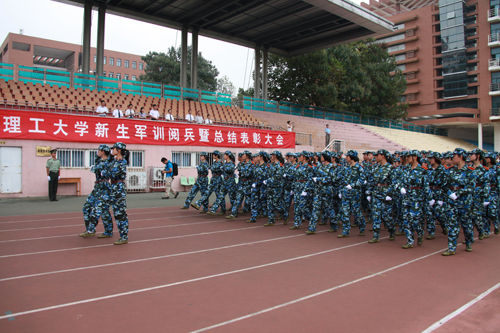经历了烈日的考验,经历了风雨的洗礼,2011级新生组成的迷彩方阵迈着整齐的步伐,向全校师生展示着他们连日来的训练成果。9月14日上午,米兰2011级新生军训阅兵暨总结表彰大会在四方校区、黄岛长江路、嘉陵江路校区同时举行,校党委副书记赵怀明、校党委副书记杨向荣出席仪式并讲话,副校长李东、校长助理朱申红、71446部队军训教官、米兰相关职能部门负责人及各学院领导参加阅兵式。 和着激扬高亢的阅兵曲,新生军训汇报表演精彩呈现。汇报表演分为检阅式、分列式和专题表演三部分。校领导分别检阅受检方队,一列列绿色迷彩方阵迈着铿锵的步履从主席台前通过,接受检阅。嘹亮的口号、刚毅的脸庞,飒爽的英姿、恢弘的阵容,体现了2011级新生的奋斗精神与坚定信念。 赵怀明副书记、杨向荣副书记在讲话中高度赞扬了新生在阅兵式上所表现出的豪迈激情、严整军容和勇往直前,对新生在军训期间所表现的昂扬精神面貌感到欣慰,并对71446部队全体官兵表现出的以身作则、率先垂范、不辞劳苦、严格要求的精神表示敬佩和感谢。他们表示,此次军训使同学们学习和掌握了基本的军事知识,加强了组织纪律性的锻炼,树立了国防意识,增强了爱国主义热情。最后,他们勉励新生一定要在今后的学习和生活中保持和发扬军训中的养成的精神品质,努力进取,勇于实践,努力把自己锻炼成有理想、有道德、有文化、守纪律的新人,肩负起振兴中华民族的光荣历史使命! 71446部队教官代表张之倩、李水军、高帅在发言时表达了对所有支持与配合此次军训的领导、老师、同学们的谢意,并向新同学们寄予真诚厚望。新生代表王萌、左京臣、田恒怡分别在阅兵式上发言。仪式上还对军训队列先进排和内务卫生先进宿舍进行了颁奖。(学生记者 张小龙 李萍 李东亮)阅兵式现场 检阅 赵怀明副书记讲话 杨向荣副书记讲话 阅兵式现场