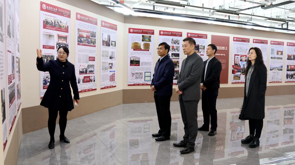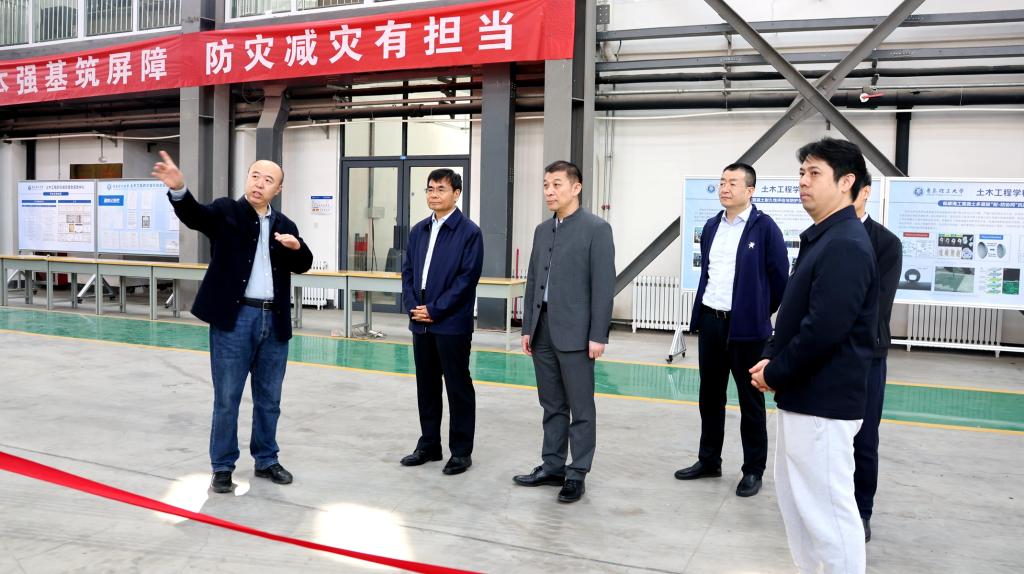 胡兴禹一行参观了学校校史馆和防灾减灾综合实验中心、空间碎片监测与低轨卫星组网实验室重点科研平台,深入了解学校在党建引领高质量发展、校园文化建设、高层次人才引育、科研平台建设、产学研深度融合等方面情况。