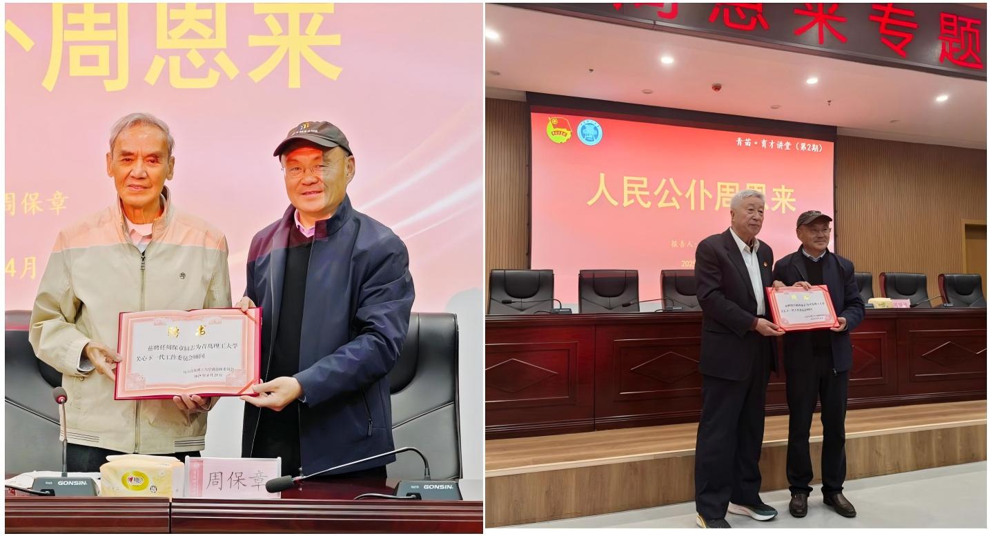 4月23日,学校关工委邀请到92岁离休干部周保章为青年学生作“人民公仆周恩来”专题报告。报告会由学校关心下一代工作委员会副秘书长、校团委书记史堃主持。学校关心下一代工作委员会主任、党委副书记李长河,青岛经济技术开发区工委(黄岛区委)原宣传部副部长、西海岸新区中老年文化艺术促进会顾问吕振西出席报告会。