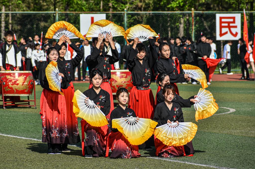 开幕式上,校区国旗护卫队、裁判员方队、师生运动员方队姿态昂扬、步伐矫健地依次通过主席台,各方队结合专业特色进行了创意十足、精彩纷呈的入场式表演,充分展现了校区师生奋发进取、团结向上的精神风貌。由土木与建筑工程系、管米兰程系、机械与电子工程系以及基础部师生带来的团体节目《华夏+中国少年说》《扇心武韵》《旗舞山河》《青春舞力全开》等,以创意表演诠释学科魅力,将体育精神与中华优秀传统文化深度融合,为运动会增添了热烈气氛。