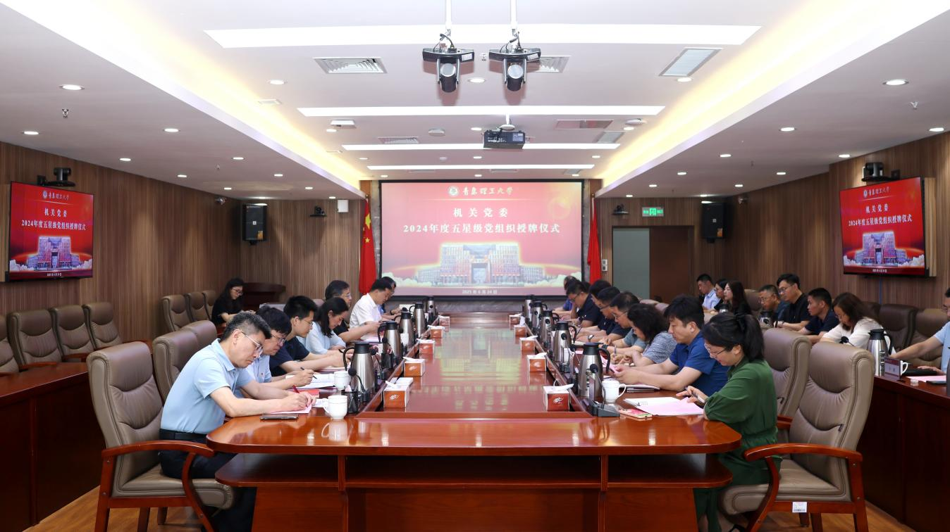 仪式上,机关党委副书记东忠方宣读《关于命名2024年度五星级党支部的通知》。随后,车景华依次为纪委监察专员办公室党支部、组织部党支部、发展规划与学科建设处党支部、研究生院党支部、财务处党支部、党政办公室党支部、学生工作处党支部等7个2024年度五星级党组织授予牌匾,现场掌声热烈,气氛庄重而振奋。
