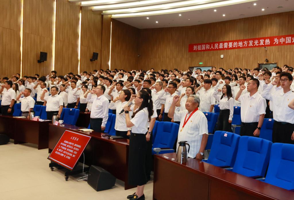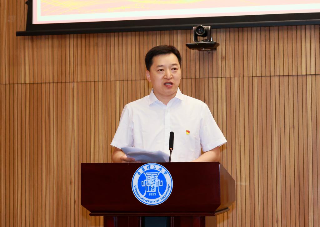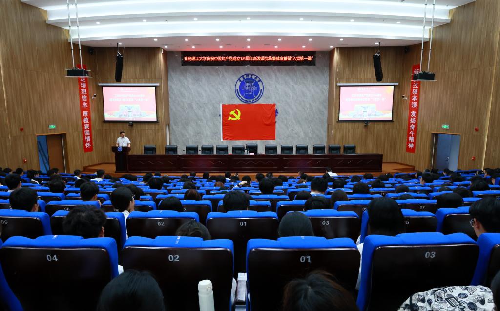 在庆祝中国共产党成立104周年之际,7月1日上午,学校在黄岛校区主报告厅举行庆祝中国共产党成立104周年新发展党员集体宣誓暨“入党第一课”活动。党委副书记车景华出席本次活动,老党员代表、“两优一先”代表、2025年新发展党员等350余人参加。活动由党委常委、组织部部长卢新明主持。