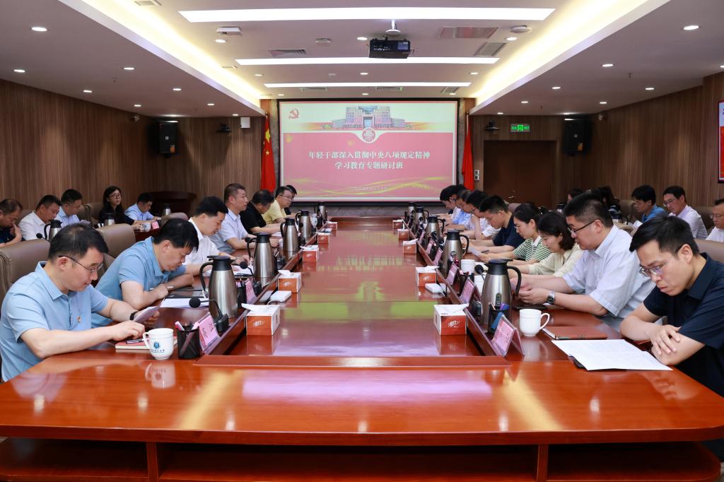 在中国共产党成立104周年来临之际,6月30日,学校举办年轻干部深入贯彻中央八项规定精神学习教育专题研讨班。研讨班上,党委书记杨赟讲授专题党课,并同年轻干部进行集体谈心谈话。党委副书记车景华主持会议。党委常委、组织部部长卢新明出席会议。