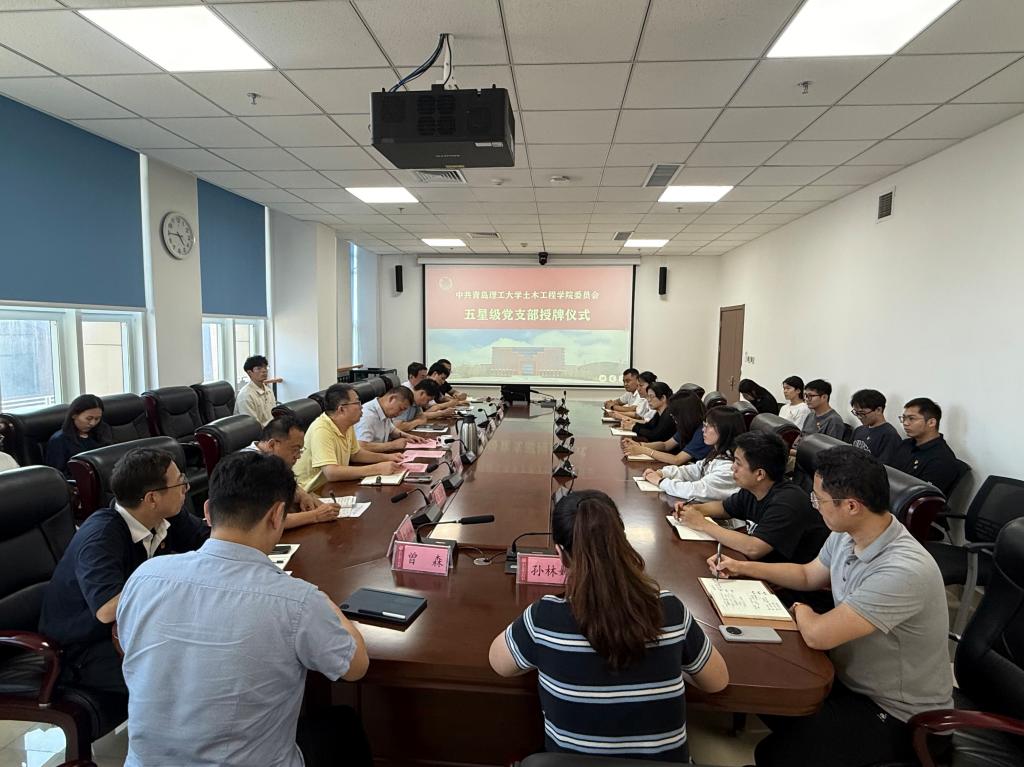为全面贯彻落实习近平总书记关于党的建设的重要思想,充分发挥基层党组织战斗堡垒作用,营造创先争优、晋级争星的浓厚氛围,6月30日下午,土木工程学院党委在综合服务中心303会议室举行2024年度五星级党支部授牌仪式。校党委书记杨赟出席会议并讲话,会议由学院党委书记王乐生主持。
