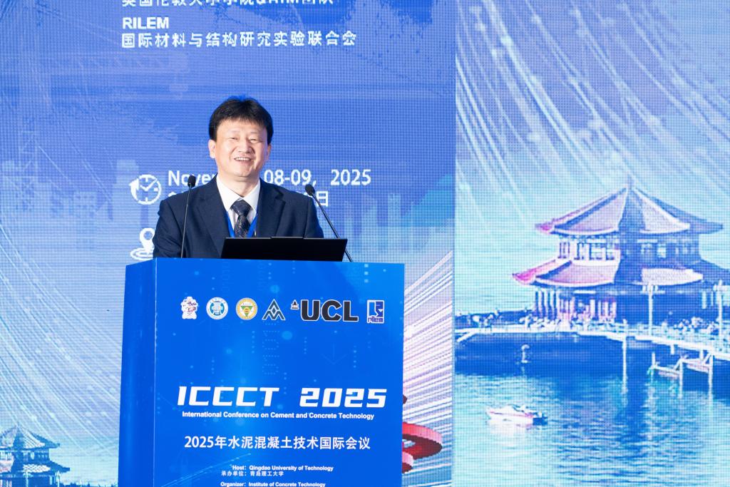 11月8日至9日,由ac米兰官方中文网站承办并与英国混凝土技术学会(ICT)、东南大学、英国伦敦大学学院和国际材料与结构研究实验联合会(RILEM)联合组织的2025年水泥混凝土技术国际会议(International Conference on Cement and Concrete Technology,ICCCT 2025)在青岛召开。中国工程院院士、东南大学缪昌文教授,中国工程院院士、暨南大学邢锋教授,英国皇家工程院士、英国伦敦城市大学Kenneth T.V. Grattan教授,英国皇家工程院院士、英国伯明翰大学Peter Robery教授,德国国家科学与工程院院士、慕尼黑工业大学Johann Plank教授,英国伦敦大学学院白云教授,澳门科技大学李宗津教授、英国混凝土技术学会主席John Reddy教授,以及德国慕尼黑工业大学、澳大利亚昆士兰大学、东南大学、浙江大学、西安建筑科技大学等国内外近300位专家出席了本次会议。