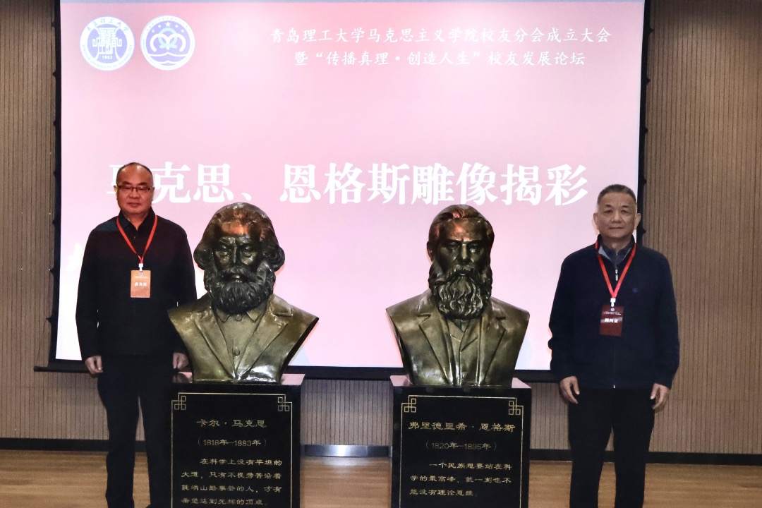 陈伟与谭业庭教授共同为马克思、恩格斯雕塑揭幕,这不仅象征着真理火种的赓续,也标志着校友分会新征程的开启。与会人员共同观看校友代表录制的祝福短片,这份跨越山海传递着对母校与学院的深情眷恋,让现场洋溢着温馨浓厚的校友情谊。
