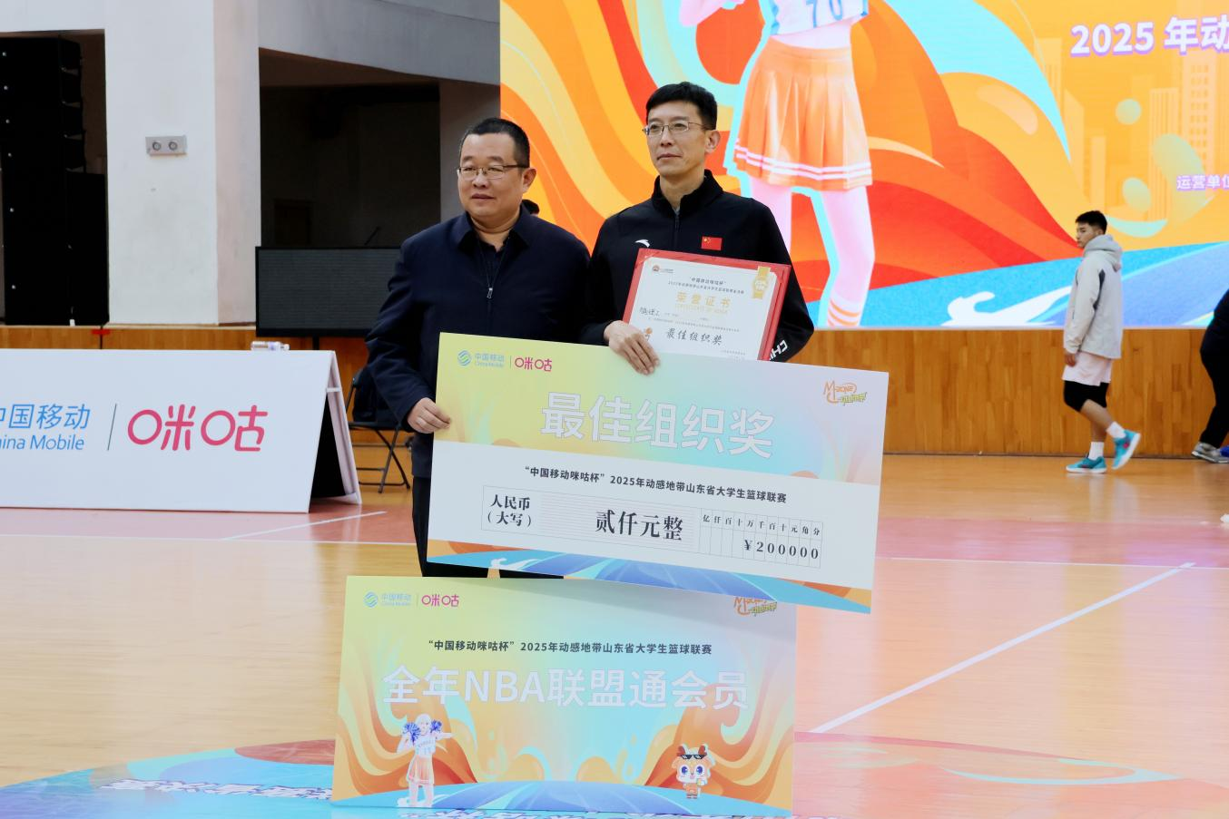 学校党委书记杨赟会见来校参加决赛活动的领导嘉宾。山东省学校体育协会会长仝兴华,米兰党委副书记、校长张凯,党委副书记车景华,共青团山东省委学校部二级调研员路文杰,山东省教育厅体卫艺处副处长伊超,山东省学校体育协会副会长、鲁东大学体育学院院长邱建国,中国移动通信集团山东有限公司青岛分公司副总经理王宁,中国移动通信集团山东有限公司战略客户中心副总经理柴坤波、NBA中国副总裁谢芳、咪咕文化科技有限公司省专协同运营中心副总经理徐萌、青岛西海岸新区教育和体育局党组成员、新区教育和体育事业发展中心主任王新峰等出席闭幕式并为获奖队伍、参赛队员颁奖。