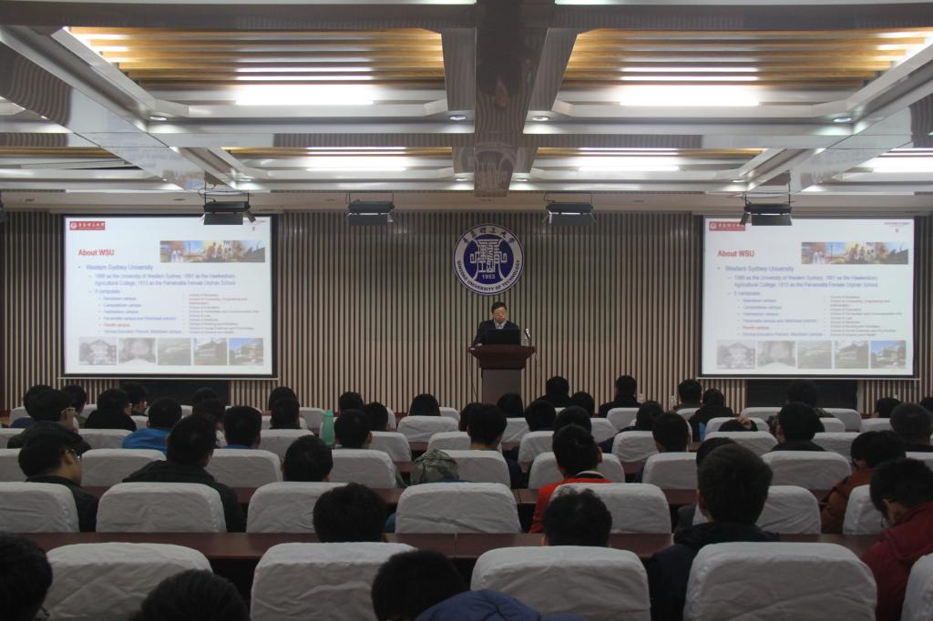 12月22日下午,澳大利亚西悉尼大学Chunhui YANG教授应邀在嘉陵江路校区主教学楼一楼东报告厅为师生做了一场精彩的报告。土木学院张春巍、机械学院党机械工程学院政领导班子、部分教师及学生代表200余人聆听了报告。