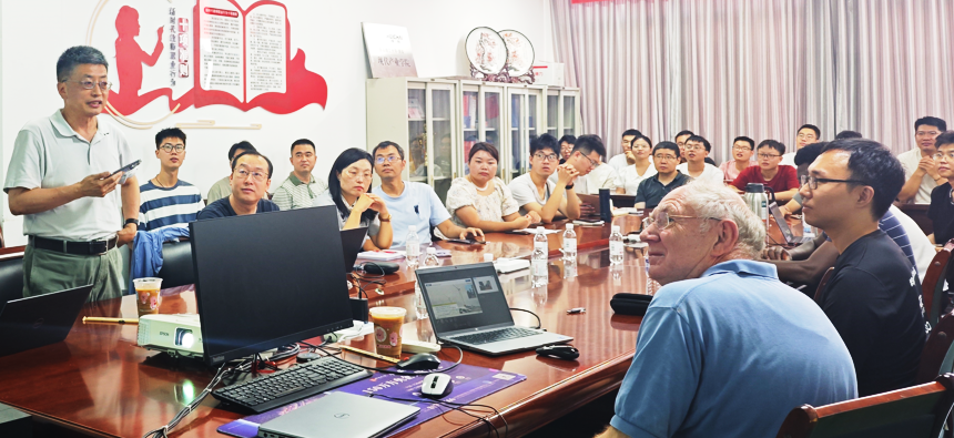 在交流环节,学校博士生巨斌、李自颖、梁庆琛与德国汉诺威莱布尼兹大学博士生金闵杰、西蒙·德尚、阿蒙·福牧分别就最新的科研成果进行了汇报和交流。