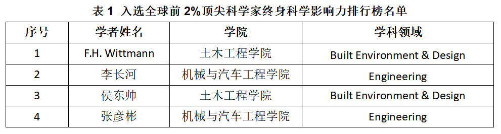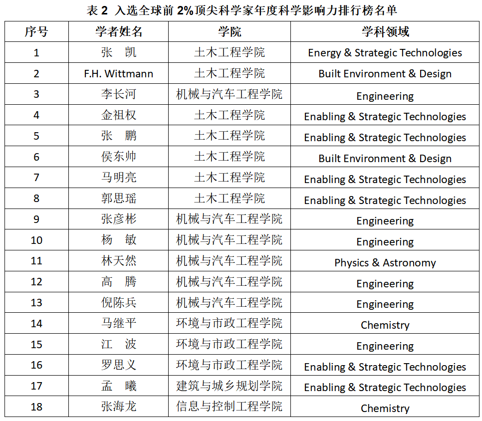 该榜单分两个排行榜,“终身科学影响力排行榜(1960-2024)”统计科学家职业生涯期间的综合影响表现, “2024年度科学影响力排行榜”集中于科学家上一年度的学术影响力。米兰威特曼(F.H. Wittmann)、李长河、侯东帅和张彦彬4位教师入选双榜单,较去年增加1人,另外14位教师入选“2024年度科学影响力排行榜”,入选该榜单人数较去年增加2人。