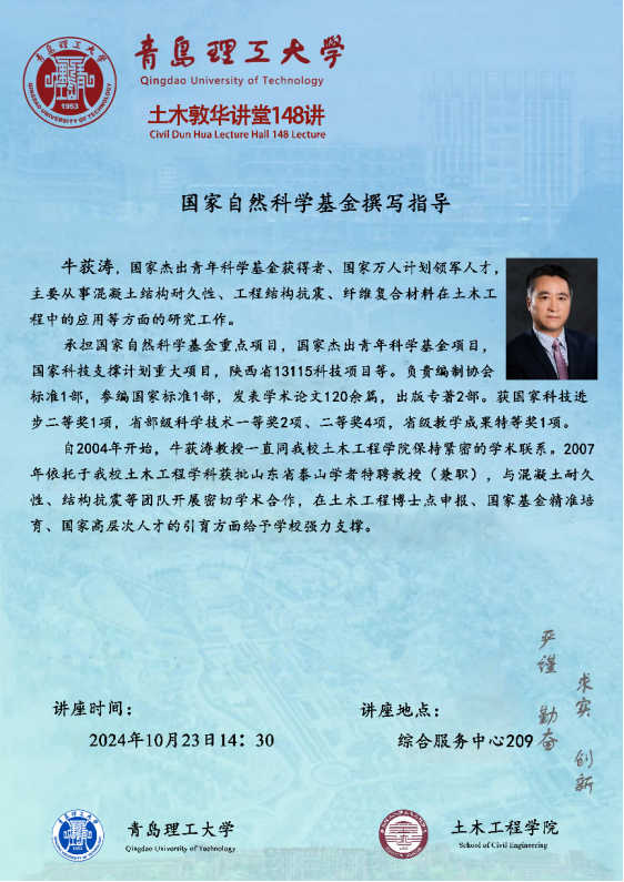 题目:土木敦华讲堂148讲:国家自然科学基金撰写指导