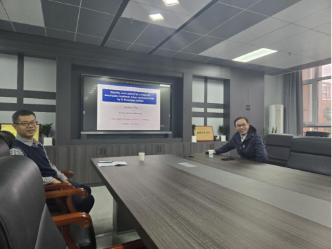 近日,应信息与控制工程学院王言前老师邀请,湖南师范大学潇湘学者朱全新教授来校开展学术交流,作了题为“一类由G布朗运动驱动的非线性随机时滞系统的镇定与控制(Stability and control for a class of stochastic nonlinear delay systems driven by G-Brownian motion)”的学术报告,会议在信控楼206会议室举行,部分学院教师及研究生参加本次会议。
