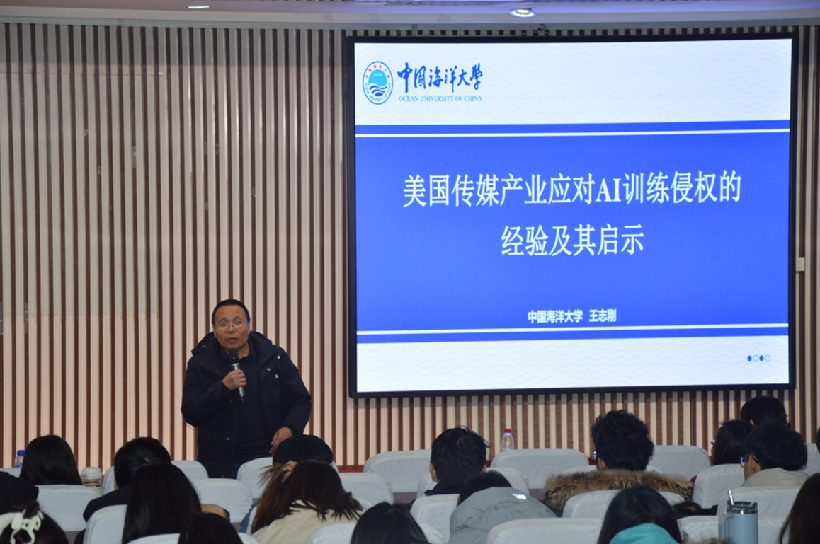 2月26日,人文社科处主办、人文与外国语学院承办的礼贤人文大讲堂第七十一讲在主教学楼东报告厅举行。中国海洋大学文学与新闻传播学院教授、博士生导师王志刚受邀作题为《美国传媒产业应对AI训练侵权的经验及其启示》的专题报告。讲座由人文与外国语学院网络与新媒体专业教研室主任常宁主持,网络与新媒体专业本科生、新闻与传播专业硕士生及学院部分教师参加讲座。