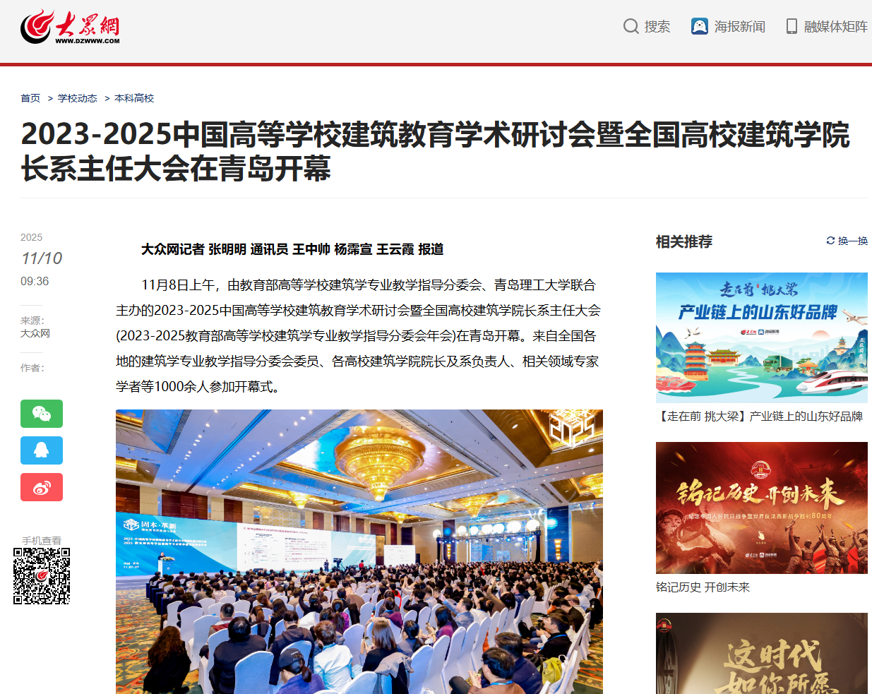 【大众网】2023-2025中国高等学校建筑教育学术研讨会暨全国高校建筑学院长系主任大会在青岛开幕