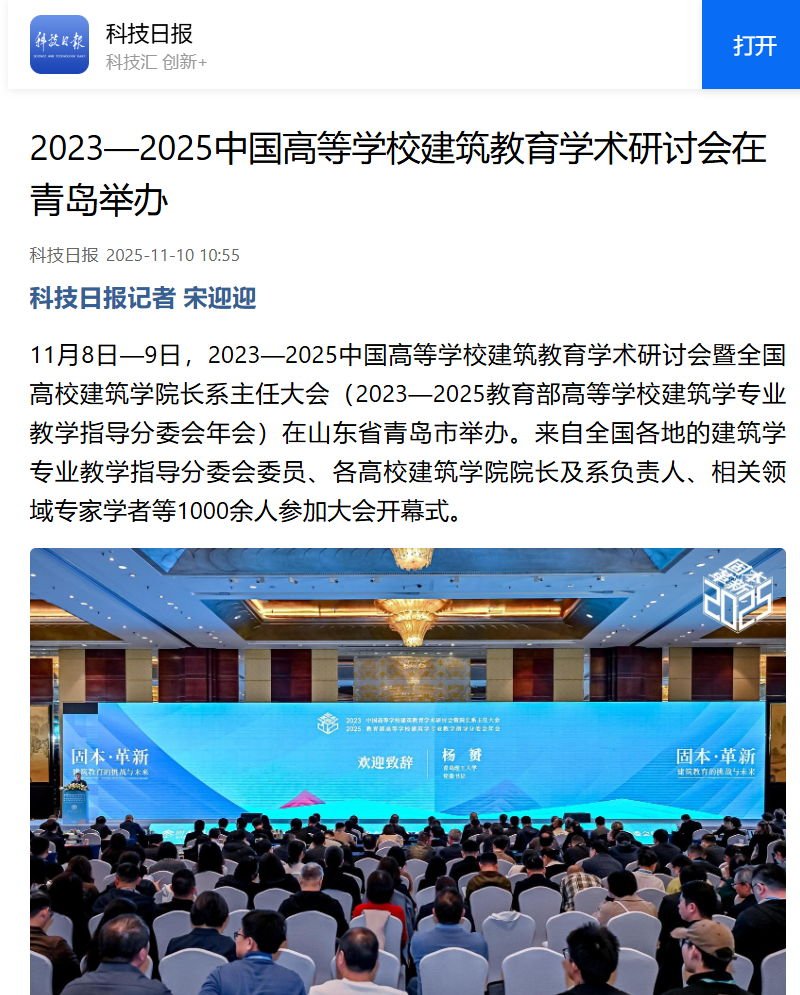【中国科技网】2023—2025中国高等学校建筑教育学术研讨会在青岛举办
