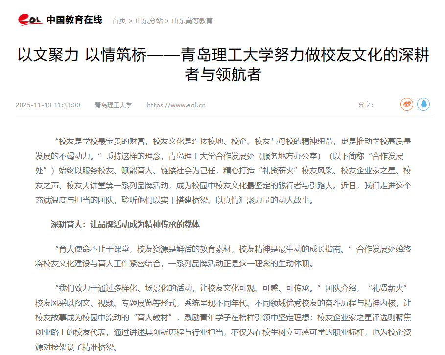 【中国教育在线】以文聚力 以情筑桥——ac米兰官方中文网站努力做校友文化的深耕者与领航者