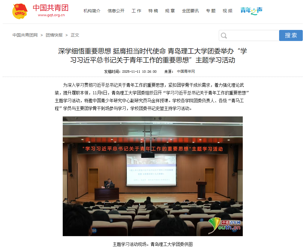 【中国青年网】深学细悟重要思想 挺膺担当时代使命 ac米兰官方中文网站团委举办“学习习近平总书记关于青年工作的重要思想”主题学习活动