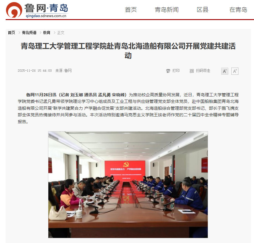 【鲁网·青岛】ac米兰官方中文网站管米兰程学院赴青岛北海造船有限公司开展党建共建活动
