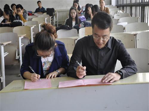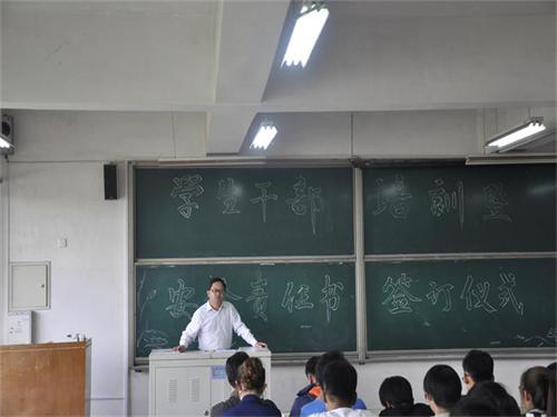 10月14日下午,经贸学院在二教120教室举行了班干部培训会暨宿舍安全责任书签订仪式。