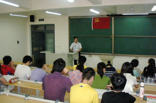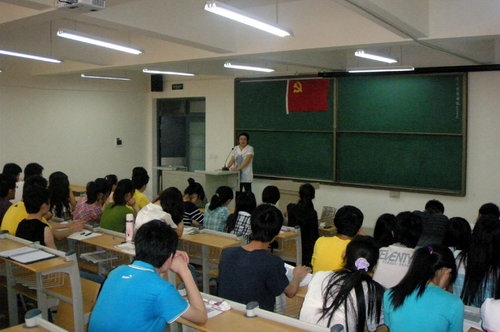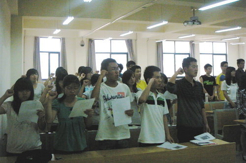 值此建党90年之际,计算机学院为进一步加强学生党员的思想政治素质,坚定信念,增强了年轻人的时代感、责任感和使命感,6月30日下午3点,计算机学院在嘉陵江路校区组织了新党员宣誓大会。 计算机学院党总支书记薛炜华、副书记魏俊文,学生一支部书记曲良波,组织委员韩小燕,学生二支部书记张英华,组织委员历建刚以及各支部学生党员悉数参加了宣誓大会。会议由曲良波书记主持。宣誓大会在激情澎湃的国际歌中拉开了帷幕。全院22名新党员在组织委员韩小燕带领下,面向党旗,庄严宣誓,重申加入党组织的决心和信念。 宣誓仪式结束后,薛炜华书记发表讲话,希望每一位共产党员都铭记这个神圣的时刻,激励自己终生践行入党誓词,努力做到坚定理想信念,树立为共产主义奋斗终身的理想,为党的事业奋斗终身。她结合当前国际国外的形势,要求学生党员要端正入党动机,做到思想上、行动上与党保持高度统一;在“创先争优”活动中,积极发挥共产党员的先锋模范作用,多读书,多学习,为维护学校稳定和学校发展做出应有的贡献。魏俊文副书记对学生党支部在“创先争优”第一阶段中举行的丰富多彩的活动进行了概要总结,要求新党员在创先争优活动要积极参与,认真总结,关心国家大事,加强理论学习,努力做一名新时期合格党员。魏书记要求在“创先争优”第二阶段工作中,要扎实推进,不断创新,力争取得更大成绩。最后,魏俊文副书记希望毕业班党员站好最后一班岗,做文明离校的表率,带动全院同学文明离校,升华母校情、师生情、同窗情,为自己的大学生活画上圆满句号。 宣誓活动结束后,学生党员表示表示:这次入党宣誓活动,增强了自身的党员意识,使他们更加珍惜来之不易的幸福生活,激发他们今后更加努力学习和工作。(计算机学院韩小燕)