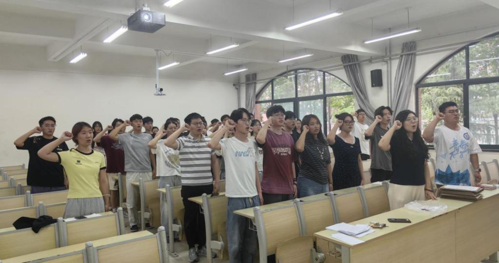 学院本科生第六支部开展庆“七一”专题党课和宣誓活动。专题党课上,支部书记通过剖析典型案例,深刻阐述了廉洁对于新时代学生党员的重要意义,引导学生党员要从自身做起,从小事做起,树立正确的价值观和权力观,坚守廉洁底线,抵制各种诱惑,以廉洁的作风为校园正气注入红色力量。微党课通过生动的讲解、鲜活的案例,让廉洁教育入脑入心,引导学生党员扣好人生的“第一粒扣子”,营造风清气正的校园氛围。党课结束后,全体党员面向党旗,庄严举起右拳,重温入党誓词。铿锵有力的誓言,表达了党员们对党的无限忠诚和为共产主义事业奋斗终身的坚定决心。通过专题党课和宣誓活动,进一步强化了党员的身份意识和责任意识,激发了党员的使命感和荣誉感。