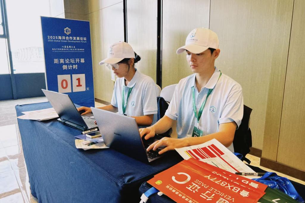论坛期间,志愿者们分散在会场引导、嘉宾接待、资料分发、语言翻译、后勤保障等12个细分岗位,累计服务时长超5000小时。他们用真诚与专业,将志愿精神融入每一个服务细节。无论是在熙熙攘攘的会场,还是在幕后的保障区域,志愿者们始终坚守岗位,用微笑和汗水诠释着“奉献、友爱、互助、进步”的志愿精神。他们的出色表现不仅赢得了与会嘉宾、主办方和社会各界的广泛赞誉,更为学校树立了良好的形象。“服务期间,与嘉宾交流,不仅锻炼了我的外语沟通能力,也让我了解到国际海洋生态保护的最新研究方向,更让我意识到专业知识与社会需求的紧密联系,未来我会更努力学习,希望能为海洋事业发展贡献自己的专业力量。”环境与市政工程学院设备232班车佳豪同学分享道。
