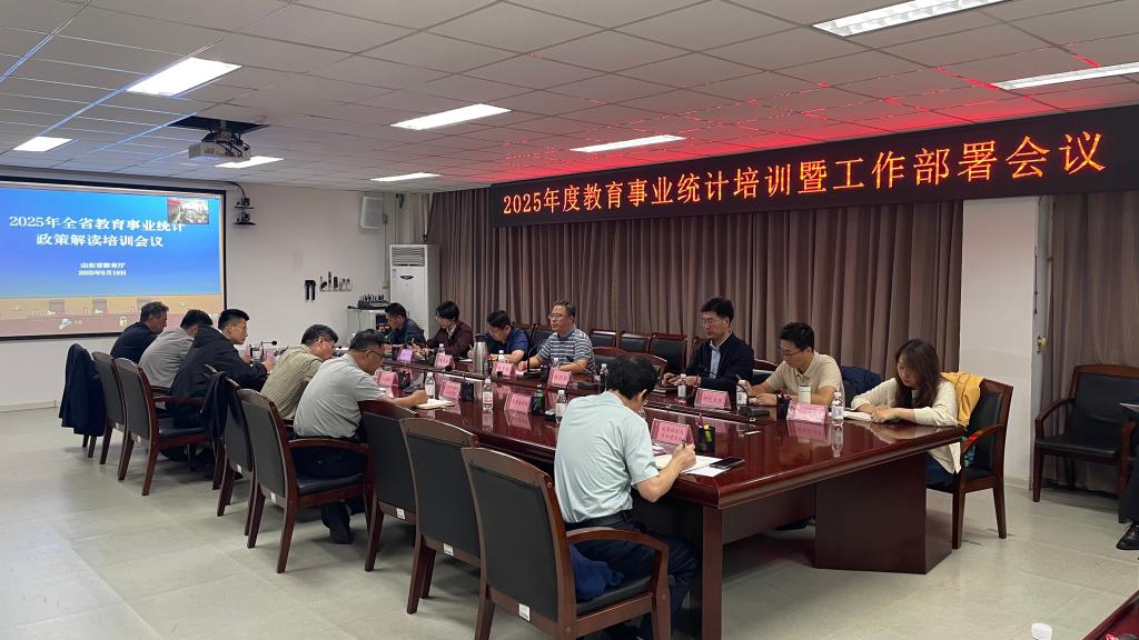 为扎实推进教育事业统计工作,9月19日,省教育厅召开2025年全省教育事业统计工作视频会。学校在黄岛校区现代教育中心212会议室设置线上分会场并召开工作部署会。党委常委、副校长陈连军主持会议,各相关部门负责人和填报责任人参加。