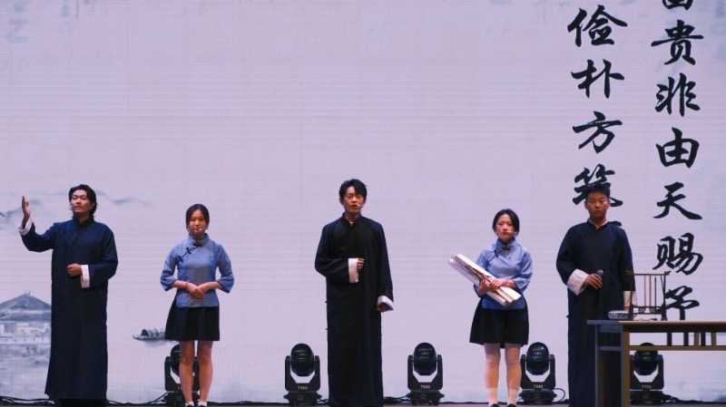 “艺·百花齐放” 篇章集中展现了学院深厚的美育功底与开阔的艺术视野。这里既有《曾国藩家书》品读带来的文化沉淀与家风滋养,也有流行金曲《爱情转移》带来的时代脉搏。舞蹈《刀马旦》将传统戏曲元素与现代舞美融合,飒爽英姿尽显国潮之美。丁珺老师的独唱《飞》则以极具张力的表演,象征着艺术创作的自由与超越,合唱《天地龙鳞》则用恢弘的旋律唱响了文化自信的强音,充分体现了美育在传承与创新中的重要作用。