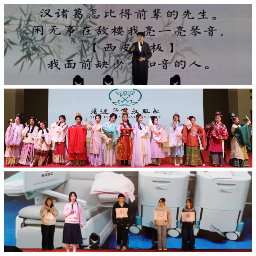 京剧选段韵味醇厚,胡琴锣鼓声中,演员以抑扬顿挫的唱腔与张弛有度的身段,演绎国粹之美——老生唱腔苍劲悠扬,尽显青年意气;舞蹈《灵舞锐刀》动作飒爽,舞动青春朝气;青春演讲则以真挚话语传递青年担当。古装走秀《又见红楼》、情景剧《无偿献血车》等节目,通过深情演绎,融文化底蕴于时代温度,以平凡故事传递大爱微光。