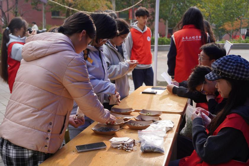 10月26日,学院开展“重阳囊聚安康意,纸鸢书传敬老意”手工活动,现场整齐摆放着茉莉、薄荷、薰衣草、陈皮等多味香料,学生们化身“调香师”,小心翼翼地斟酌每种香料的比例,反复闻嗅调试,最后将香料装进香囊,在亲手实践中触摸重阳文化肌理,感悟传统节日的深厚内涵。同时,还将对家人的思念、对长辈的节日问候,写在色彩各异的纸鸢书签上并悬挂于绳索之上,微风拂过,五颜六色的书签轻轻摇曳,如同一只只承载着心意的纸鸢,让重阳敬老的温情在校园里静静流淌。在动手过程中,不仅把对传统节日的理解转化为具象的香囊与书签,更让“尊老、敬老、爱老”的传统美德在校园里生根发芽,赋予传统节日全新的青春活力。