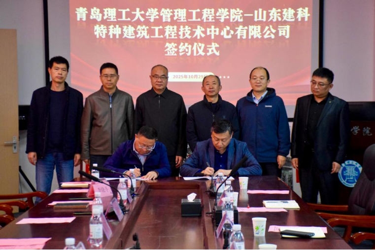 10月29日,管米兰程学院与山东建科特种建筑工程技术中心有限公司,在学院616会议室举行校企合作签约仪式。校党委常委、统战部部长陈伟出席仪式并致辞,学院班子成员、各系主任、学生代表,山东建科特种建筑工程技术中心有限公司总经理朱锋、副总经理裴兆贞、总工程师程海涛,1999级工程管理专业校友、管米兰程学院校友理事会副会长、山东建科装饰装修分公司总经理刘辉,山东省建筑工程质量检验检测中心有限公司青岛分公司总经理胡现虎出席仪式。活动由管米兰程学院党委书记孟凡勇主持。