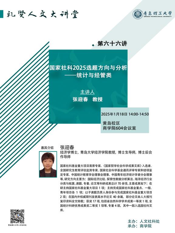 学术预告|【礼贤人文大讲堂】第六十六讲:国家社科2025选题方向与分析——统计与经管类