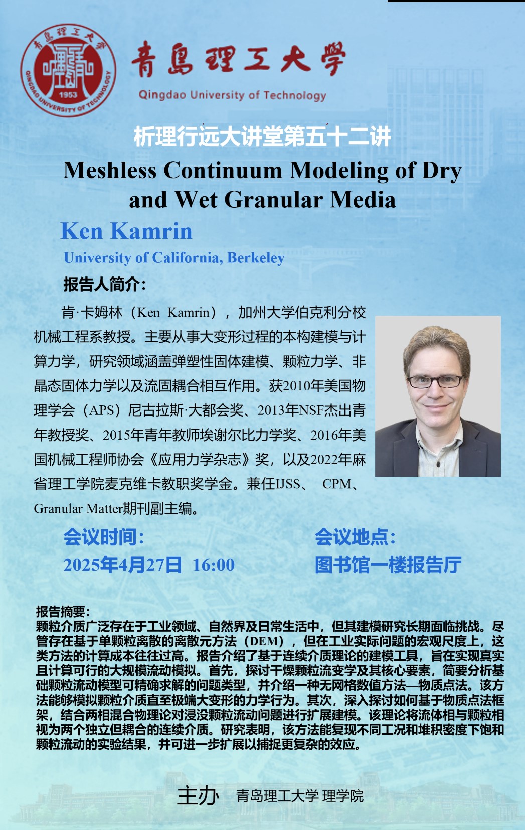 学术预告|Meshless Continuum Modeling of Dry and Wet Granular Media