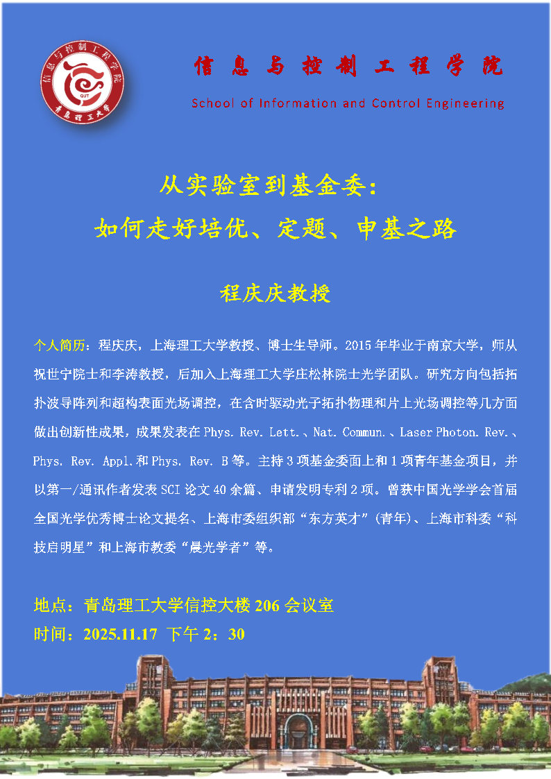 学术预告|从实验室到基金委:如何走好培优、定题、申基之路
