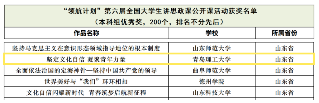 《马克思主义为什么行?》以习近平总书记“七一”讲话精神为切入点进行阐释,走进助力神舟飞船凯旋的复杂网络与可视化研究所,视听新颖生动,激励同学们自觉学习马克思主义,引导听众将马克思主义内化于心、外化于行。该获奖作品由程圣媛、雷晓宇、徐文静、李祎伟、谢晓辉、张孟超共同完成,由马克思主义学院教师王妺、赵筱侠、赵纪龙指导。《坚定文化自信 凝聚青年力量》体现理论与现实有机结合,采取实景引入、PPT展示以及视频等新媒体教学手段,给学生呈现出一堂生动、活泼、有吸引力的课堂,加深学生对坚定文化自信的理解,激发新一代青年干事创业的责任感和使命感,凝聚青年力量。该获奖作品由王玉雪、齐甜甜、杨国强共同完成,由马克思主义学院教师华章琳、洪岩、韩斐琳指导。马克思主义学院主动作为,承担起此次活动的指导作用,组建指导教师团队,多次召开参赛团队全体会议,审议选题、商定讲课形式、组织磨课,指导每个团队挖掘出各自的特色和亮点。