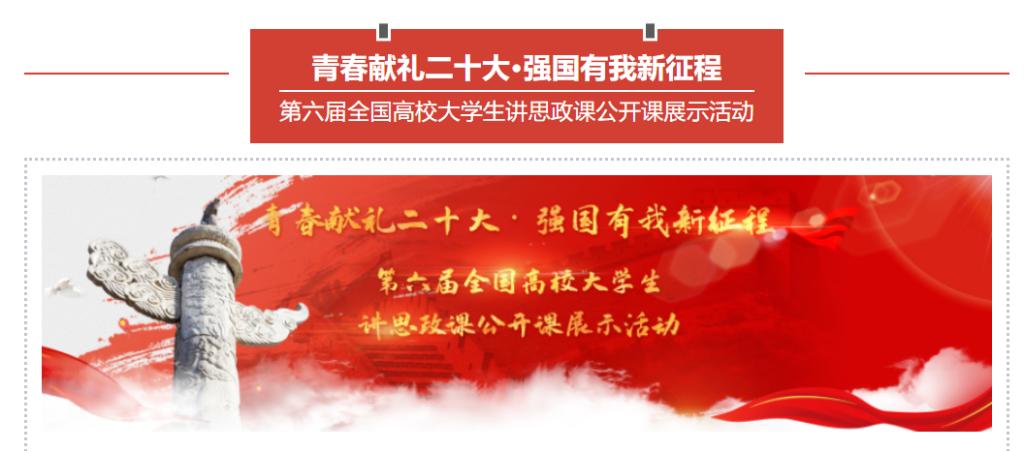 “青春献礼二十大 强国有我新征程”——第六届全国高校大学生讲思政课公开课展示活动自2022年5月启动,历时11个月。活动鼓励支持学校思政课教师在开展实践教学过程中,指导大学生组建团队,围绕思政课程中的有关章节或专题进行教学设计,以“青春献礼二十大 强国有我新征程”为主题开展教学,引导大学生深刻理解中国共产党为什么能、马克思主义为什么行、中国特色社会主义为什么好,深化对思政课教学内容的认识和思考,展现新时代大学生的马克思主义理论素养和精神风貌。