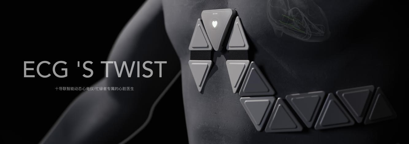 ECG'STWIST心电仪的设计强调在实现固定医疗功能的基础上,尽可能的适应和满足人的生理及心理需求;产品外观造型采用独特的三角造型,避免强烈的对比形态,通过造型设计隐藏充满机械零部件,使产品更具有人机亲和力;产品还强调操作的便捷化,单一按键功能与手机app的配合便于老年用户操作。