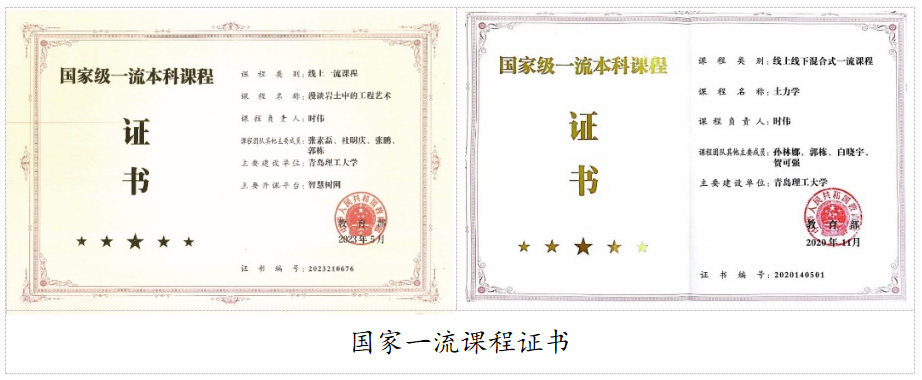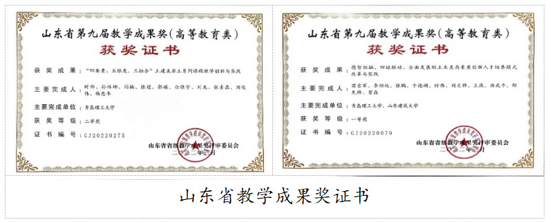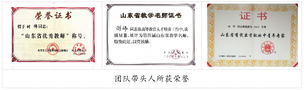团队获山东省示范性基层教学组织、山东省课程思政教学团队、山东省省级教学团队、青岛市工人先锋号等称号;成员获省级教学名师、省优秀教师、省市级师德标兵、市级五一劳动奖章等市级以上荣誉10余项,获全国教学创新比赛二等奖1项,省教创赛一等奖2项、二等奖1项,省青教赛一等奖1项。团队还承担国家自然科学基金10余项、重大工程项目30余项,获国家杰青、青年拔尖人才等国家级省级人才称号7项,省级以上科技奖励20余项。